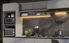 Essa é a opção perfeita para quem gosta de uma decoração minimalista. Com grande espaço interno, a cozinha Nice tem visual sofisticado na cor cinza e pintura ecológica em poliéster, que protege contra os efeitos da água e do calor.