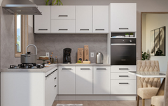 Com um visual clean e contemporâneo, a cozinha Lux oferece sofisticação para o seu ambiente. Além disso, a linha possui móveis espaçosos e portas e gavetas de fechamento fácil e suave, que garantem alta durabilidade.