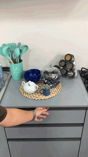 Um dos destaques desta versão é que se trata de um armário de cozinha suspenso, detalhe que traz um visual super moderno e ainda facilita na hora de fazer a limpeza da cozinha.