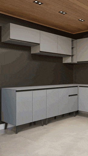 - A cozinha não acompanha pés, deve ser instalada de forma suspensa, com fixação na parede
