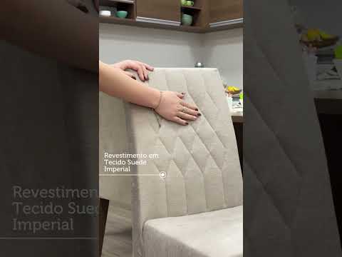 As cadeiras são robustas, fabricadas com estrutura em MDP e MDF e encosto e assento estofados com espumas de alta densidade. O revestimento é em tecido Suede Imperial, de toque macio e suave.