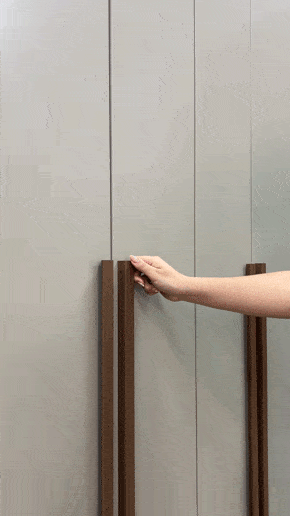 Puxadores em MDF com design alongado: destaque de modernidade e elegância que valoriza o visual do guarda-roupa.